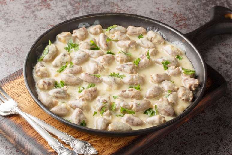 Em uma frigideira, coloque a manteiga e leve ao fogo médio para aquecer. Adicione a cebola e o alho e doure. Acrescente os corações de frango e refogue até dourarem. Em um recipiente, dilua o amido de milho no leite e despeje sobre os corações. Tempere com sal e pimenta-do-reino. Cozinhe até o molho reduzir, mexendo sempre. Desligue o fogo, polvilhe com salsinha e sirva em seguida.