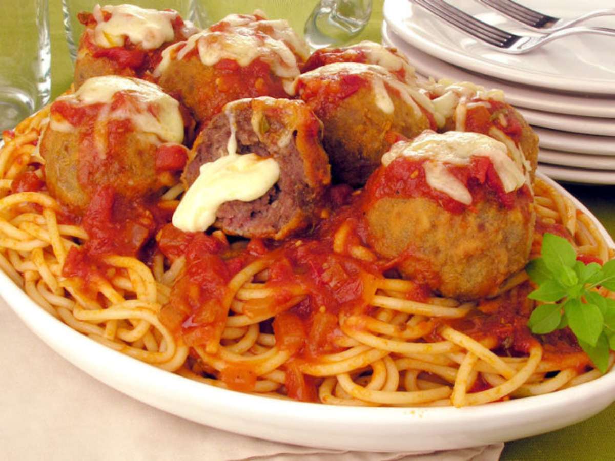 Cubra com o molho das almôndegas e polvilhe com a muçarela. Leve ao fogo alto, preaquecido, por 8 minutos para gratinar. Retire e sirva em seguida.