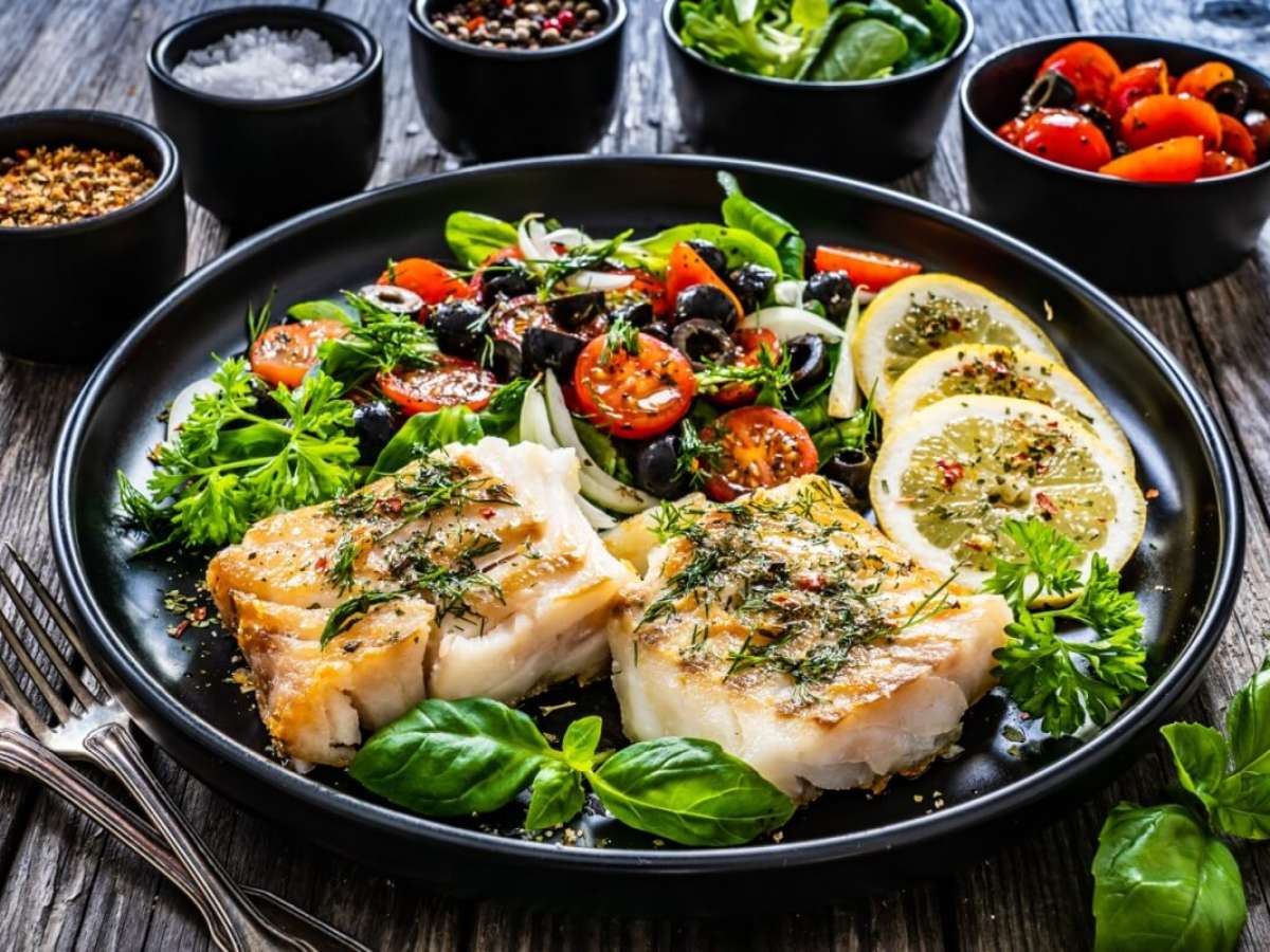 1. Filé de robalo assado com salada