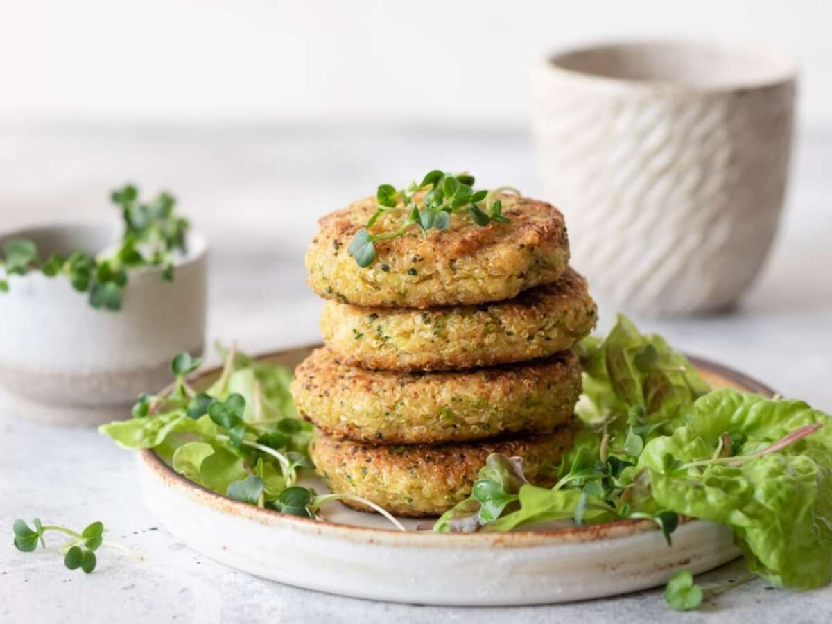 Após, aqueça uma frigideira antiaderente em fogo médio. Com o auxílio de uma colher, coloque porções da massa na frigideira, achatando levemente para formar as panquecas. Doure por 4 minutos de cada lado. Retire do fogo, disponha em um prato e decore com sementes de girassol e um ramo de salsinha fresca. Sirva em seguida.