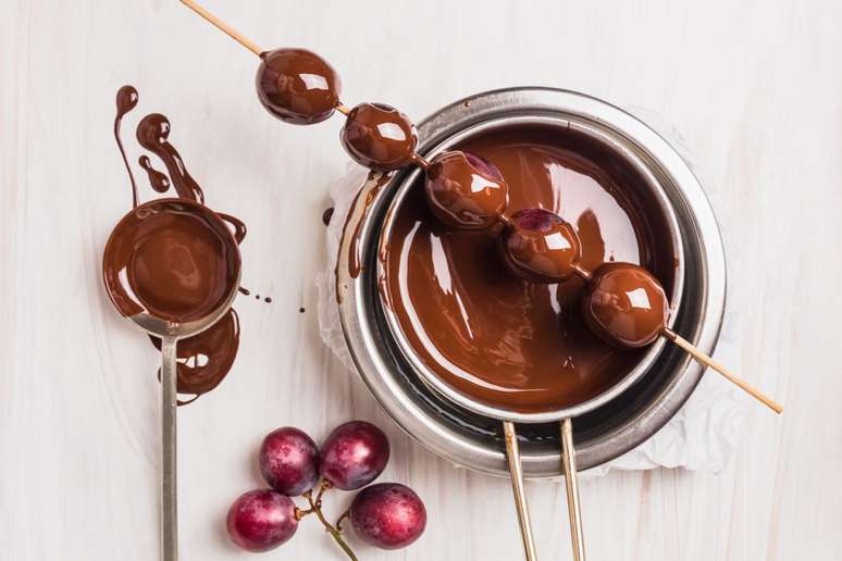 1. Espetinho de uva com chocolate para o Ano-Novo