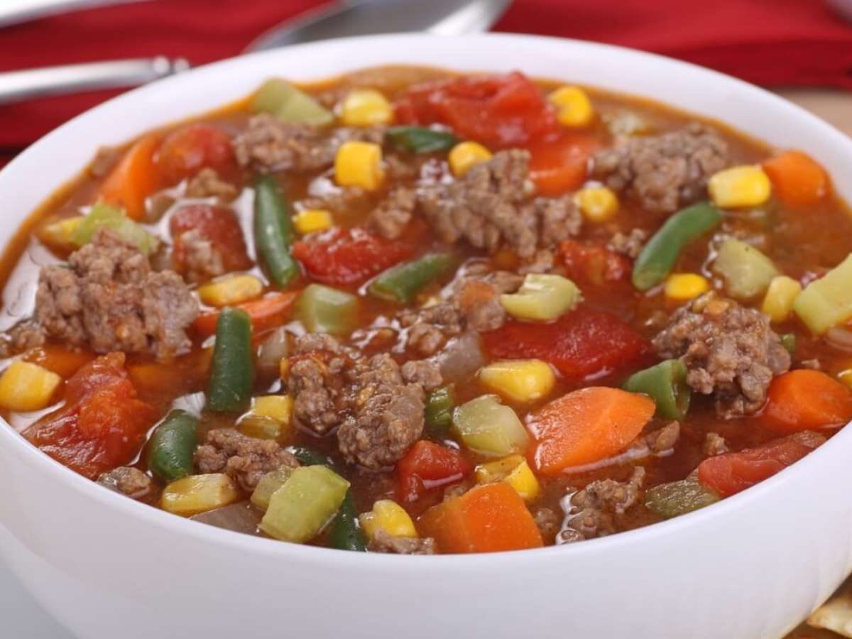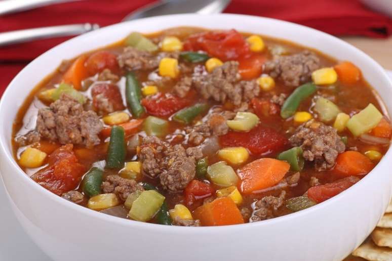 Sopa de carne moída com legumes
