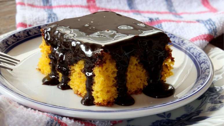 - Por fim, é só despejar a cobertura no bolo e está pronto para servir.