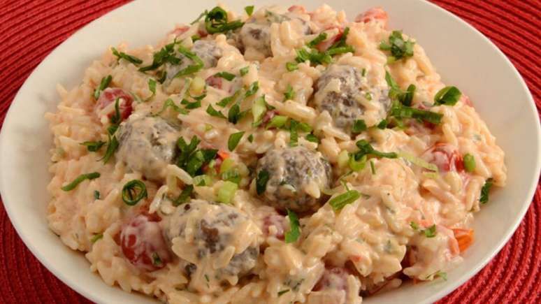 Receita de almôndegas no arroz cremoso - Foto: Guia da Cozinha Tempo de preparo: 1h Rendimento: 4 porções Dificuldade: fácil