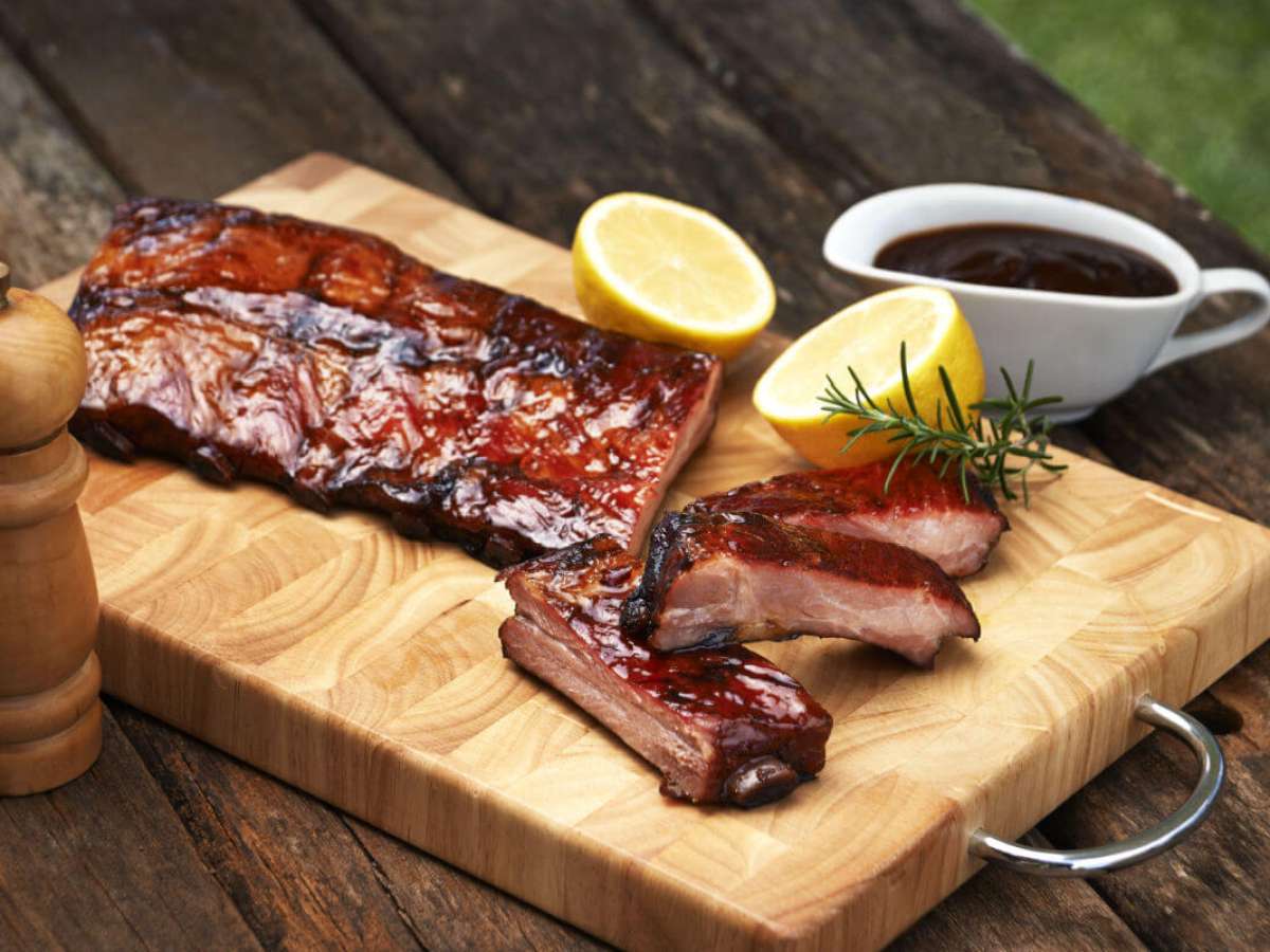 Em um recipiente, misture o molho barbecue, o açúcar mascavo, a mostarda dijon, o sal e a pimenta-do-reino. Passe o molho na costelinha de porco e coloque-a em uma assadeira. Leve ao forno preaquecido a 200 °C até que a costelinha esteja macia e dourada. Vire a costelinha na metade do tempo para assar por igual. Sirva em seguida.