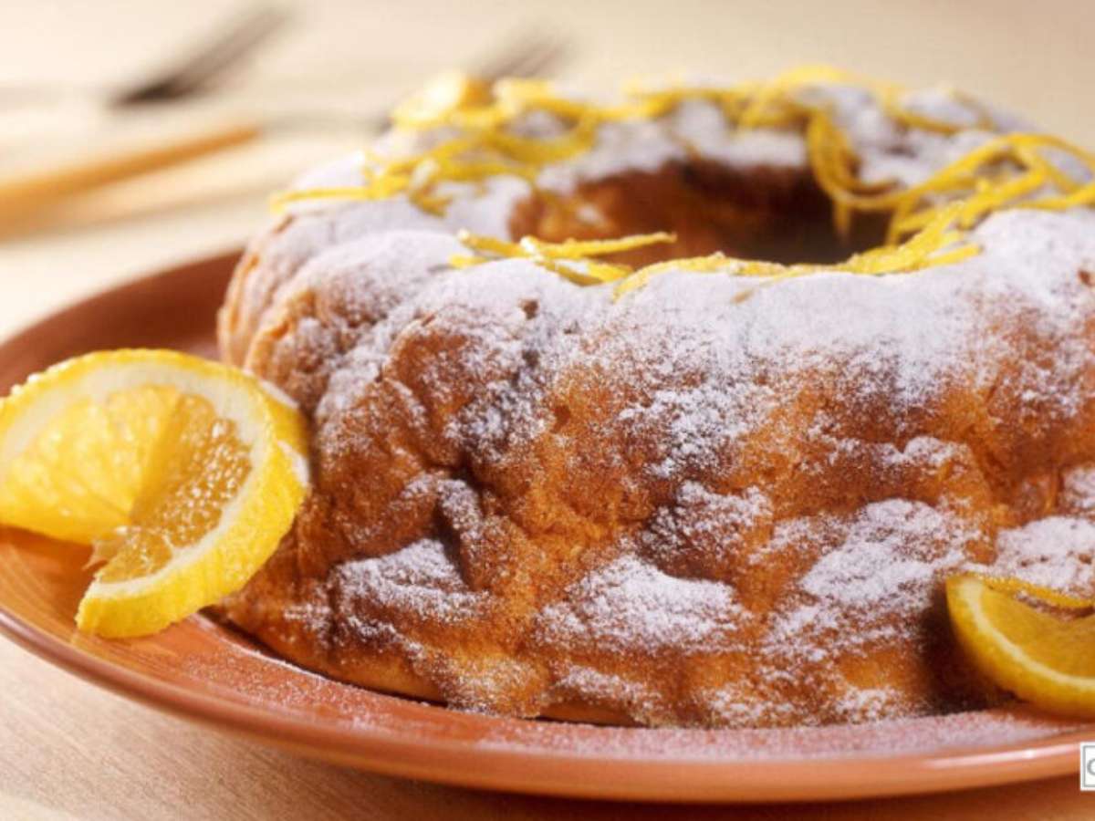 Despeje em uma fôrma de buraco no meio média untada e enfarinhada e leve ao forno médio, preaquecido, por 30 minutos ou até que ao enfiar um palito, ele saia limpo. Retire e desenforme. Misture o leite em pó e o adoçante e polvilhe sobre o bolo. Decore com as raspas de laranja e sirva.