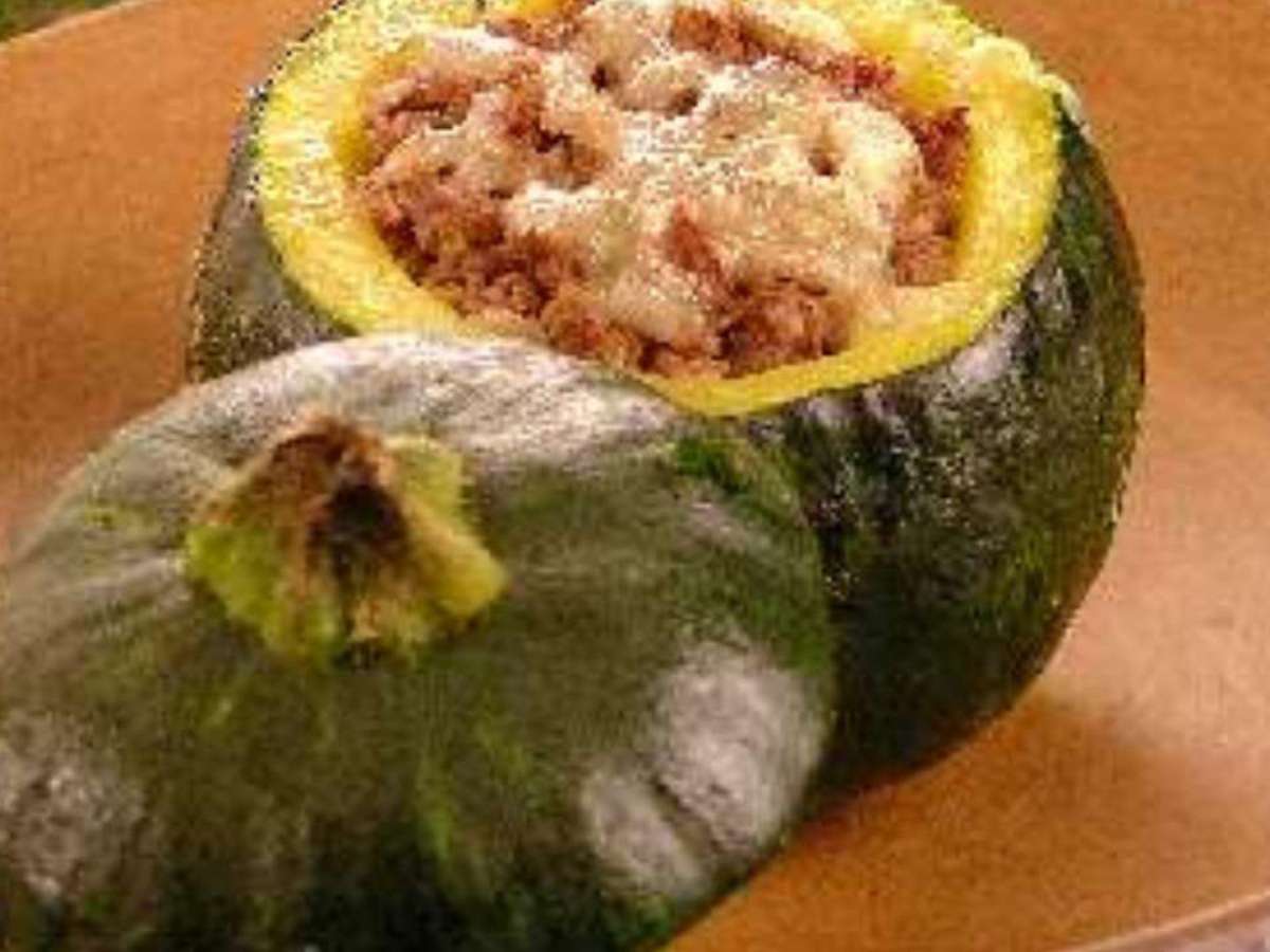 - Retire e descarte a polpa das abóboras e recheio com a carne refogada.
