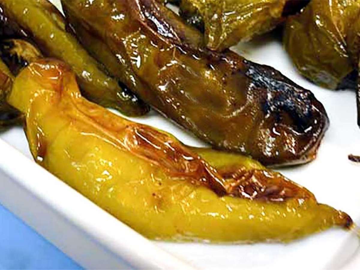 Prepare pimentas de cheiro assadas no azeite e servidas com bastante sal