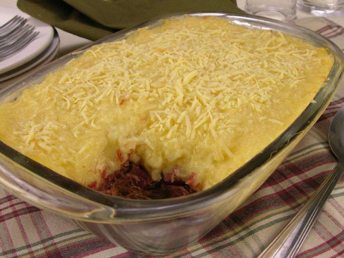 A combinação do purê cremoso com carne de sol e queijo gratinado é irresistível.