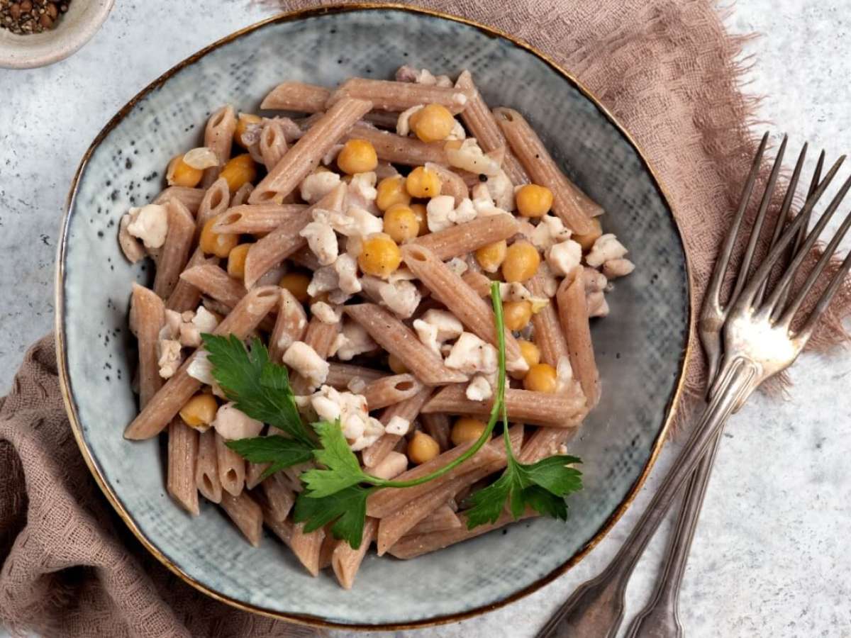 Junte o penne cozido e misture delicadamente, deixando aquecer por mais 2 minutos em fogo baixo. Finalize com a salsinha e sirva em seguida.