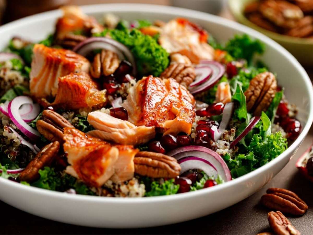 1. Salada de salmão com nozes e romã