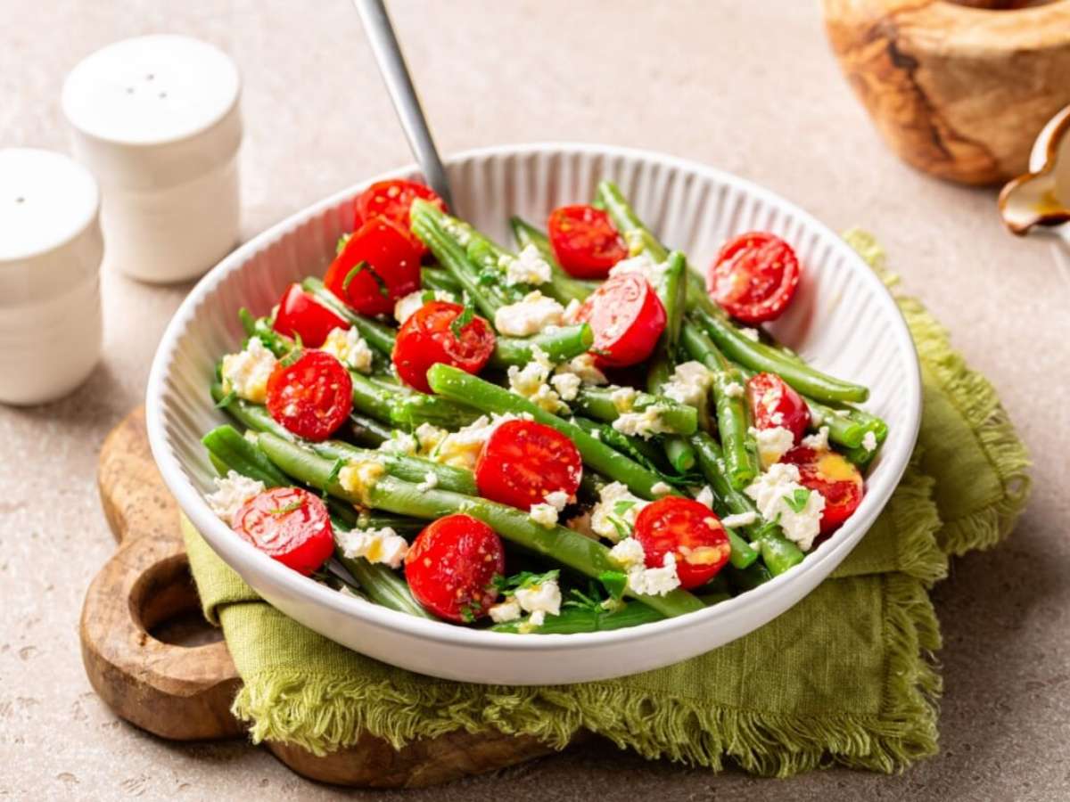 1. Salada de vagem com tomate-cereja e queijo