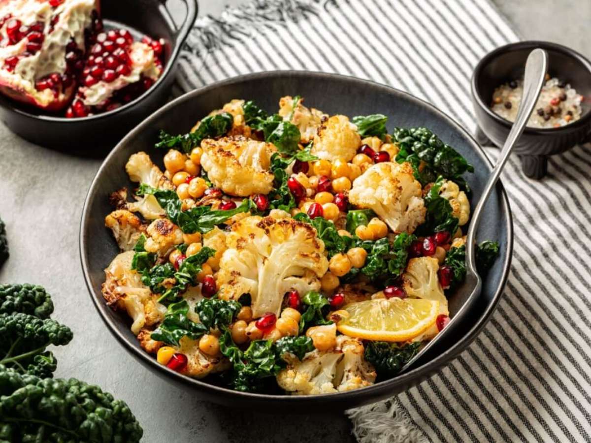 1. Salada de grão-de-bico com couve e romã