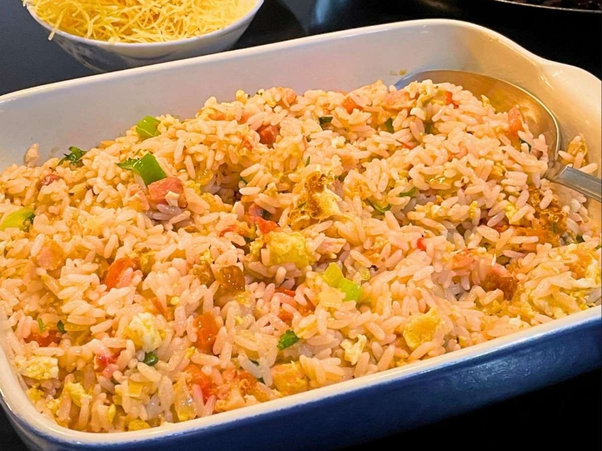 Transforme arroz amanhecido em um biro-biro úmido e suculento, com ovos, bacon e tomate fresco
