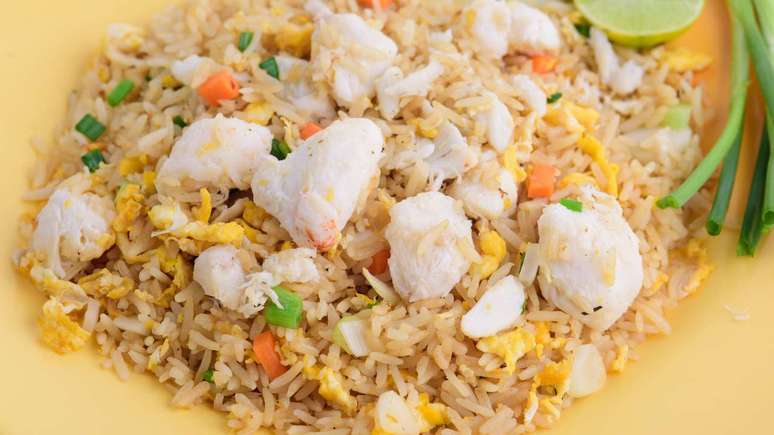 - 3 xícaras (chá) de arroz branco cozido