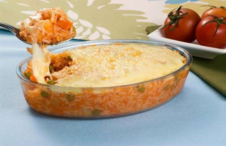 Arroz de forno vermelho com queijo pronto em 25 minutos