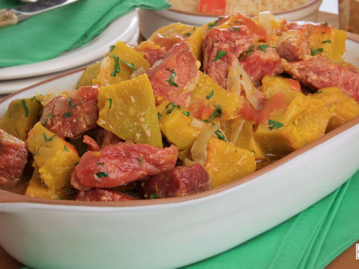 Assado de carne-seca e abóbora para comer com a família no almoço