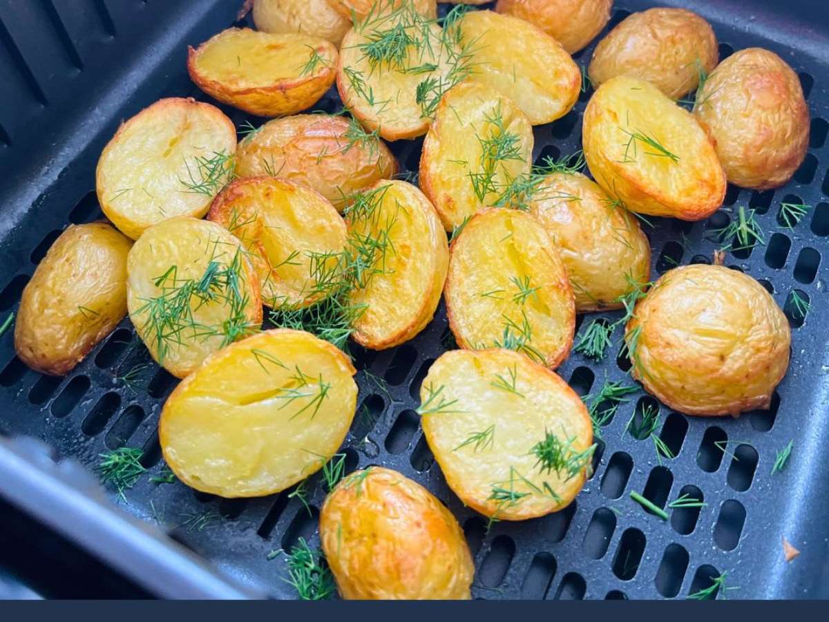- Finalize a batata na airfryer com a(s) erva(s) (opcional).