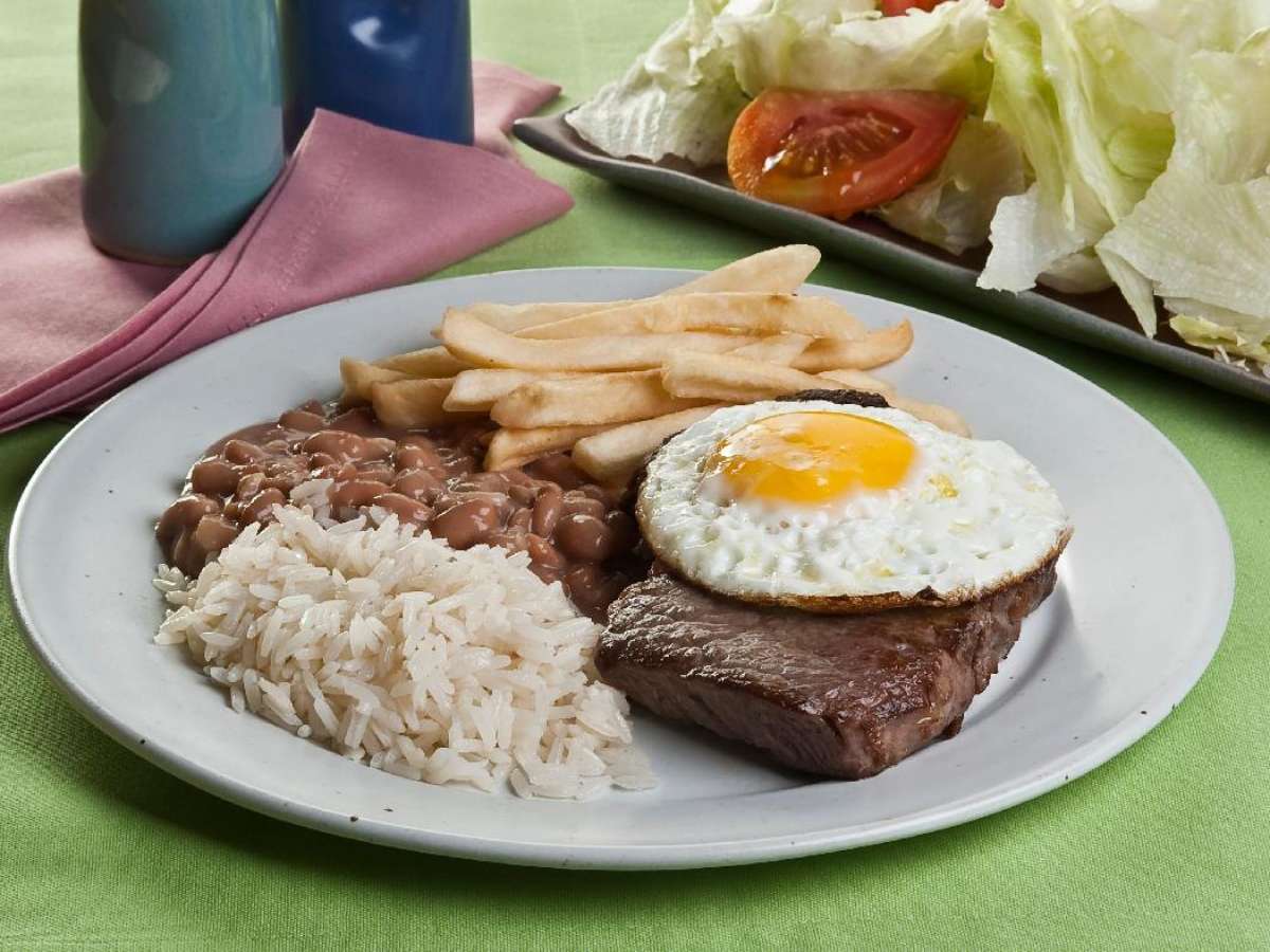 - Arroz, feijão e batata frita para acompanhar