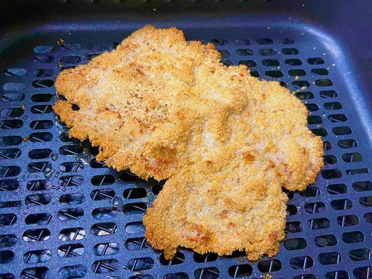 Um bife à milanesa, sem glúten, douradinho, crocante e sequinho, na Airfryer