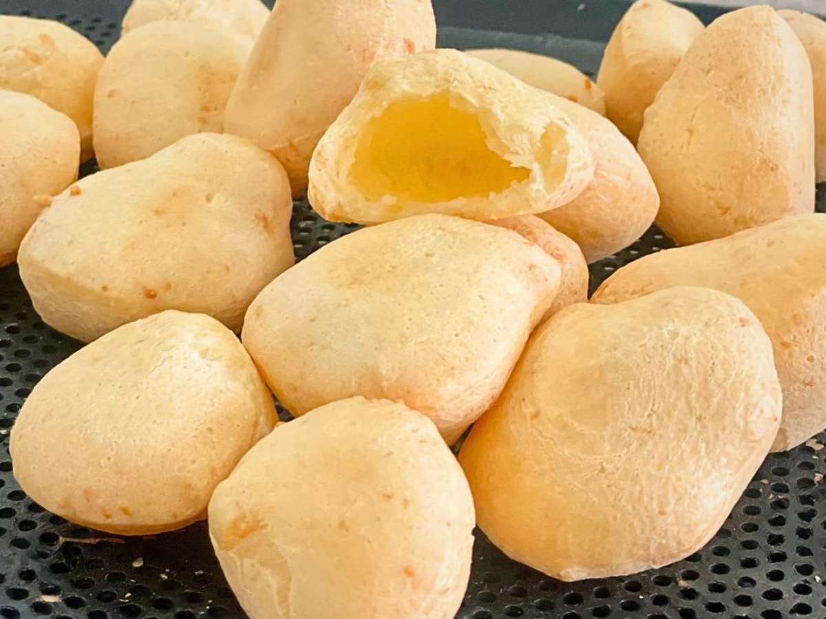Biscoito de polvilho mineiro com queijo, com a massa pingada com colher, direto na forma, sem moldar - crocante e oco