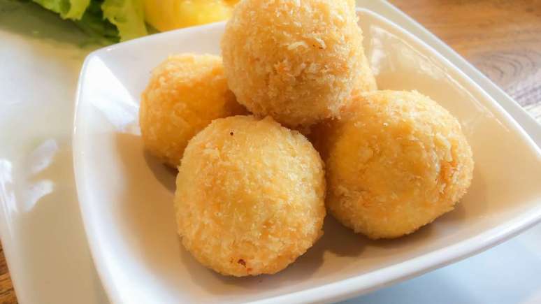 - Modele bolinhas, empane em farinha de trigo e frite, aos poucos, em óleo quente até dourar.