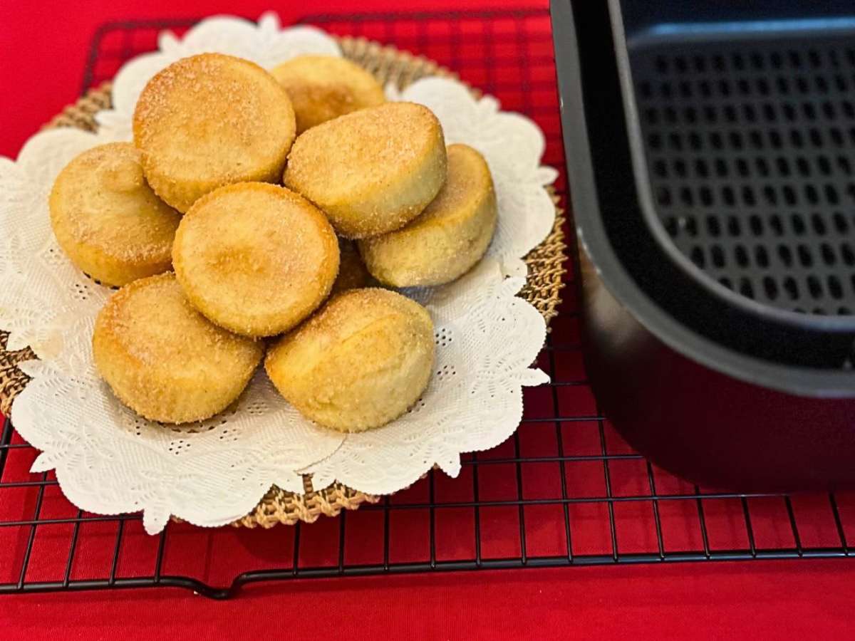 - Sirva o(s) bolinho(s) de chuva preparado(s) na airfryer de preferência quentes.