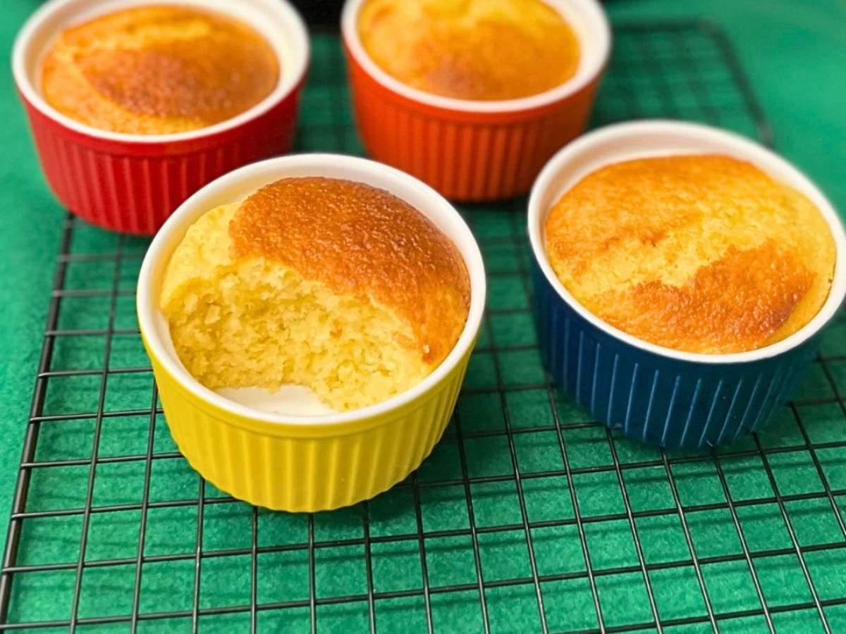 - A receita para 2 porções rende 6 unidades em tigelinhas refratárias ou ramequins de 7 cm de diâmetro por 5 cm de altura.