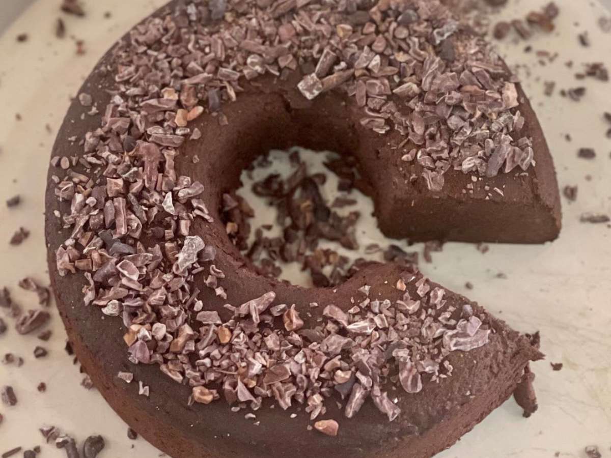 - Decore com nibs de cacau ou outro chocolate picado de sua preferência e sirva em fatias.