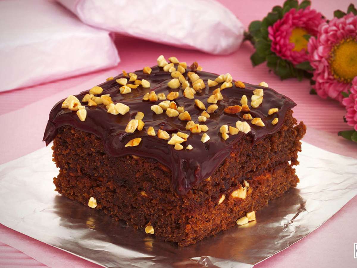 - Unte e enfarinhe uma fôrma retangular média e despeje a massa. Leve ao forno médio, preaquecido, por 40 minutos ou até que ao enfiar um palito no centro, ele saia limpo. Retire do forno, espere amornar e desenforme