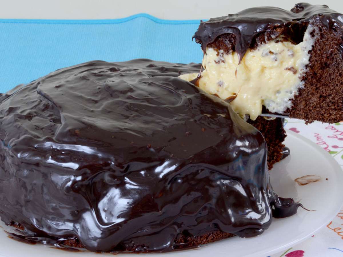 - Leve ao fogo médio, mexendo, até engrossar. Corte a parte superior do bolo, retire o miolo e preencha com a mousse