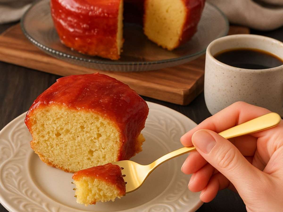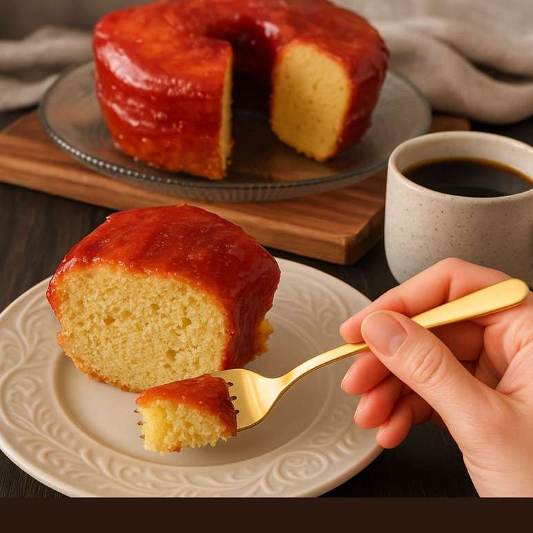 Bolo de fubá sem leite fofinho: amor à primeira mordida com calda de goiabada derretida