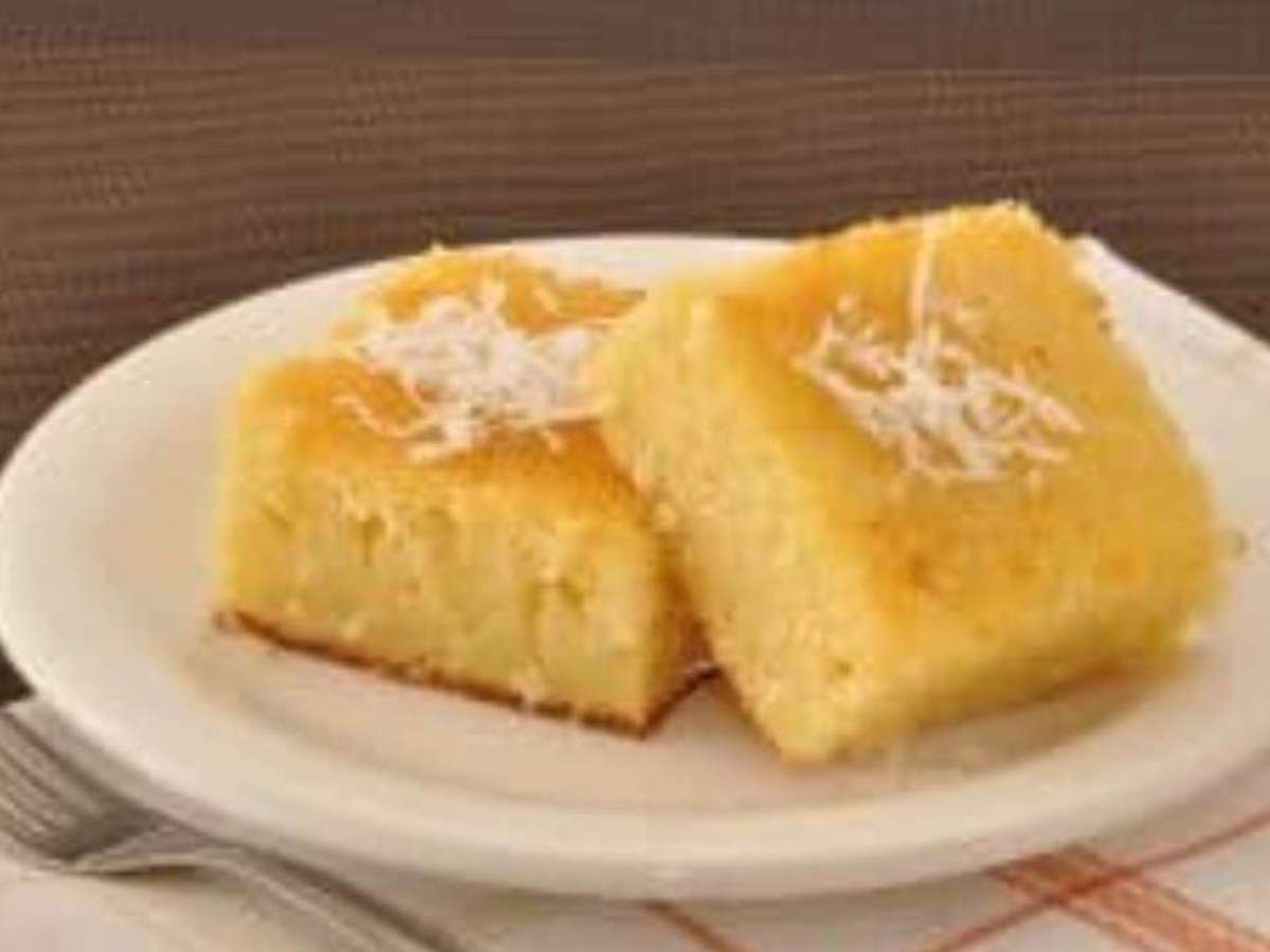 - Despeje em uma fôrma de 22cm X 30cm untada e polvilhada com açúcar e leve ao forno médio, preaquecido, por 40 minutos ou até dourar. Deixe amornar e sirva.