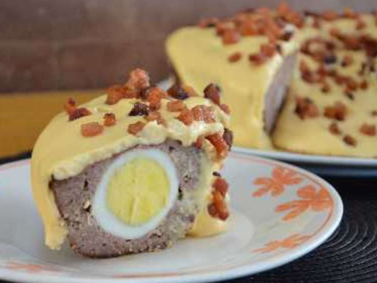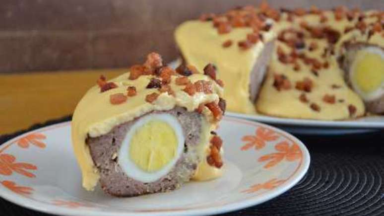 - Despeje dentro do bolo de carne, decore com bacon e sirva em seguida.