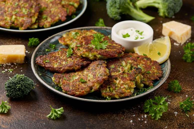 Em uma tigela, coloque os ovos e bata levemente com um garfo. Acrescente o leite e misture bem. Junte a farinha de trigo aos poucos, mexendo até obter uma massa homogênea. Adicione o brócolis, a muçarela, o parmesão, o fermento, o sal e a pimenta-do-reino. Misture até incorporar todos os ingredientes.