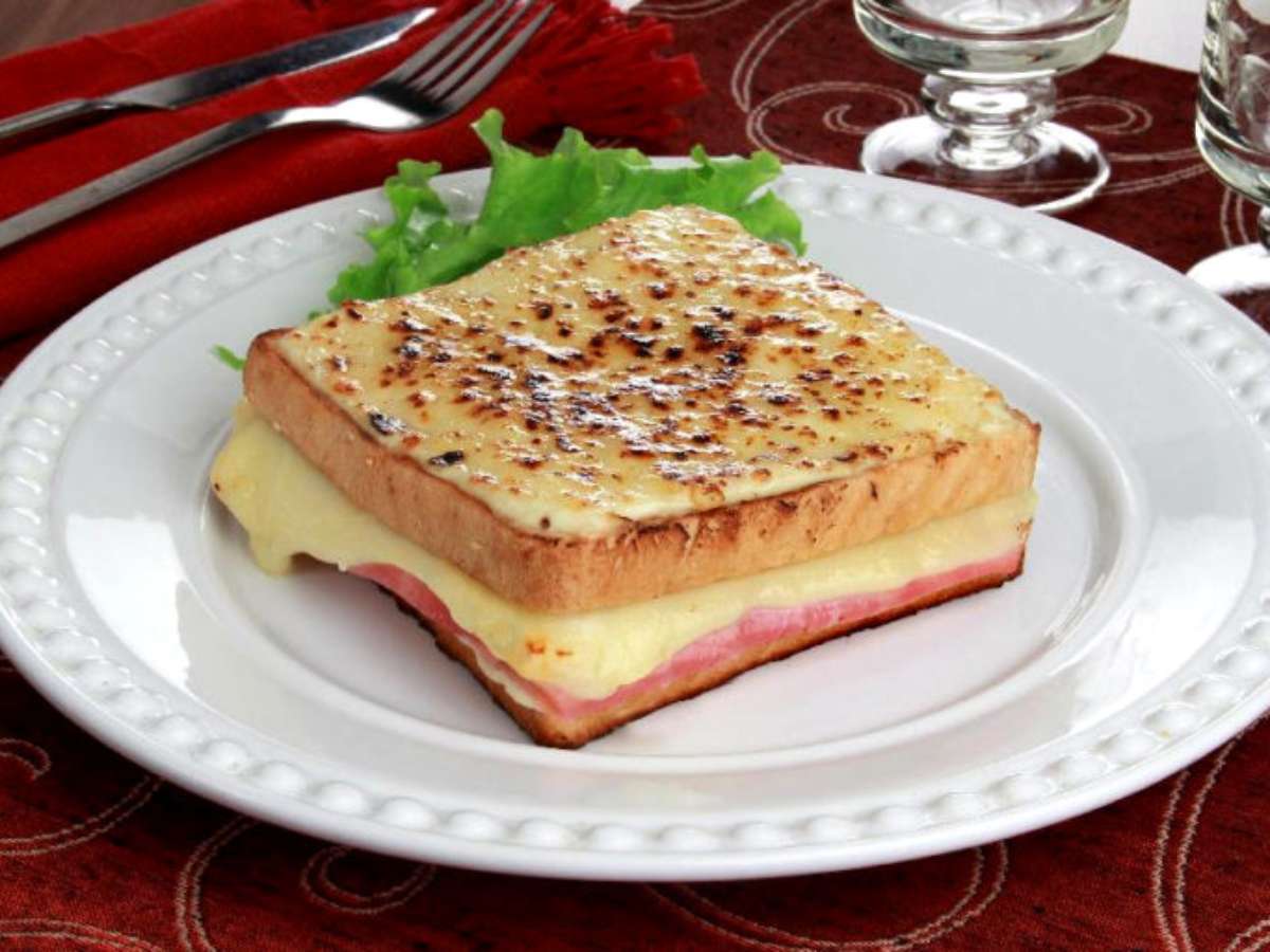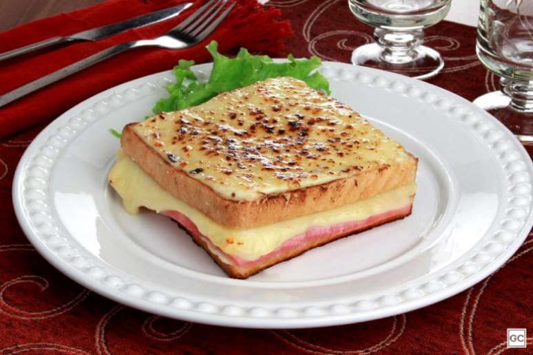 Para o molho, coloque a manteiga em uma panela e deixe derreter, em fogo médio. Junte a farinha e frite até ficar amarelada. Acrescente o leite, aos poucos, mexendo sem parar, até engrossar. Tempere com sal e noz-moscada e desligue o fogo. Misture com o creme de leite e reserve. Toste as fatias de pão em uma frigideira antiaderente em fogo alto. Reserve. Para a montagem, coloque uma fatia de pão, regue com uma colherada de molho branco e coloque uma fatia de presunto e uma de queijo gruyère. Termine com mais uma fatia de pão, uma colherada de molho branco e polvilhe com o gruyère ralado. Coloque em uma fôrma, um do lado do outro. Leve ao forno médio, preaquecido, por 15 minutos ou até gratinar.