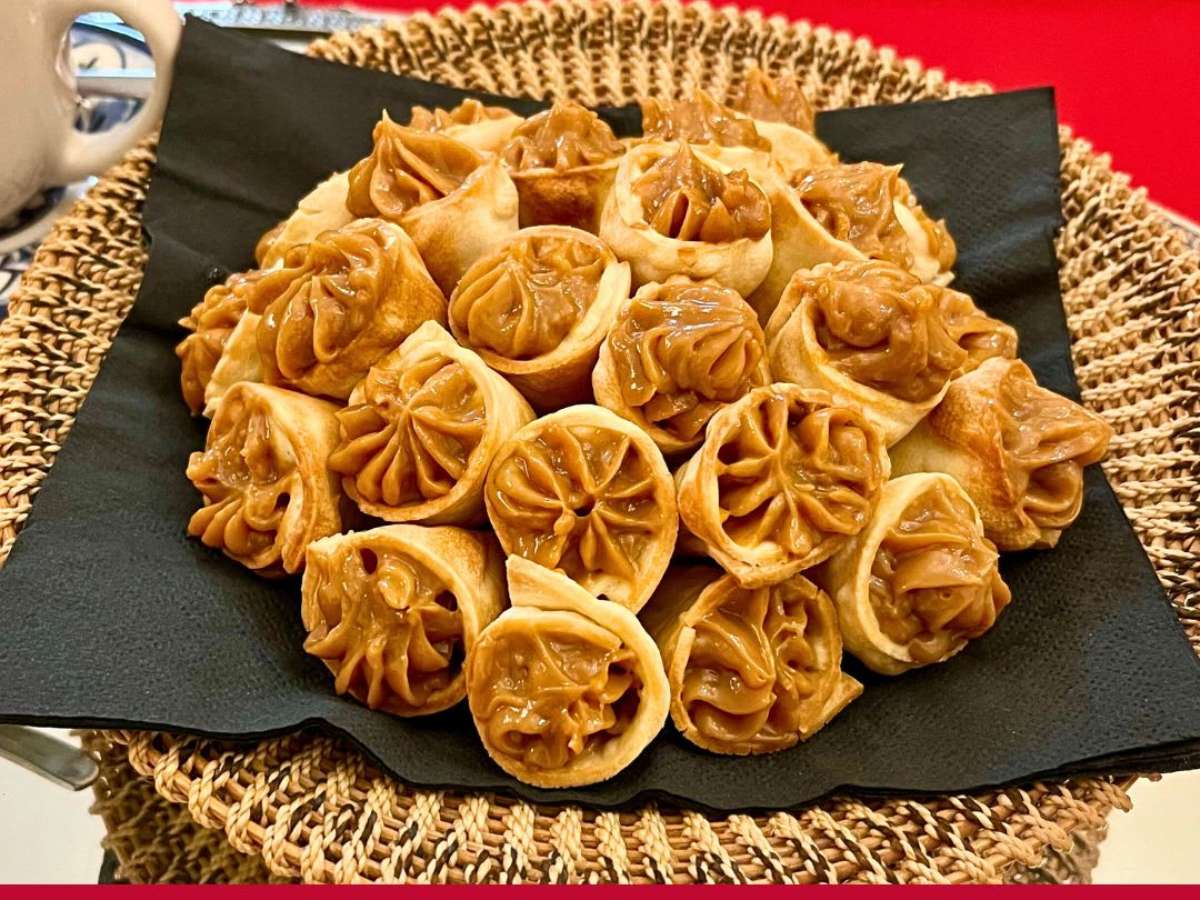 - Na hora de servir, usando uma colherzinha ou um saco de confeitar, recheie cada canudinho de massa de pastel com doce de leite.