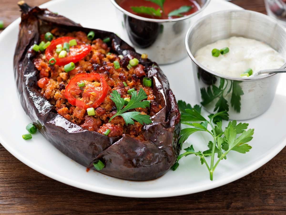 1. Berinjela recheada com carne moída