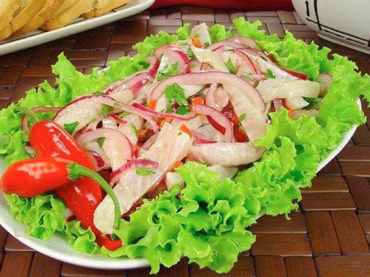 - Decore uma travessa com folhas de alface e disponha o ceviche por cima.