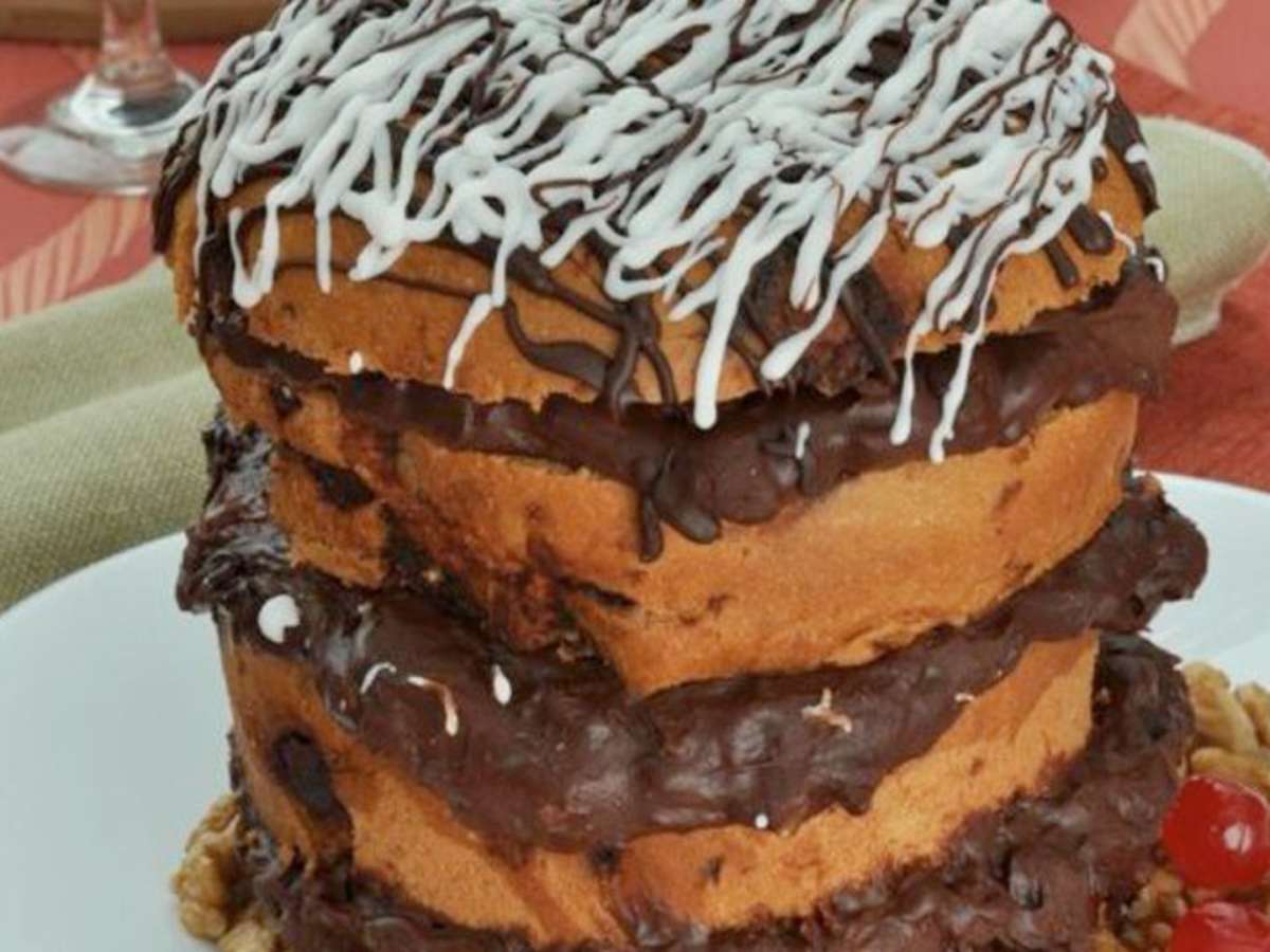 - Intercale camadas de panetone e de recheio, finalizando com a tampa do panetone