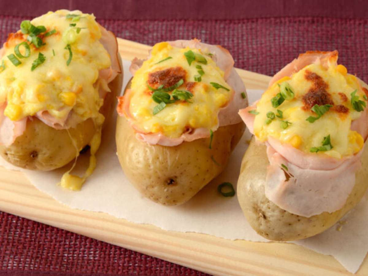 Batata recheada com creme de milho e peito de peru