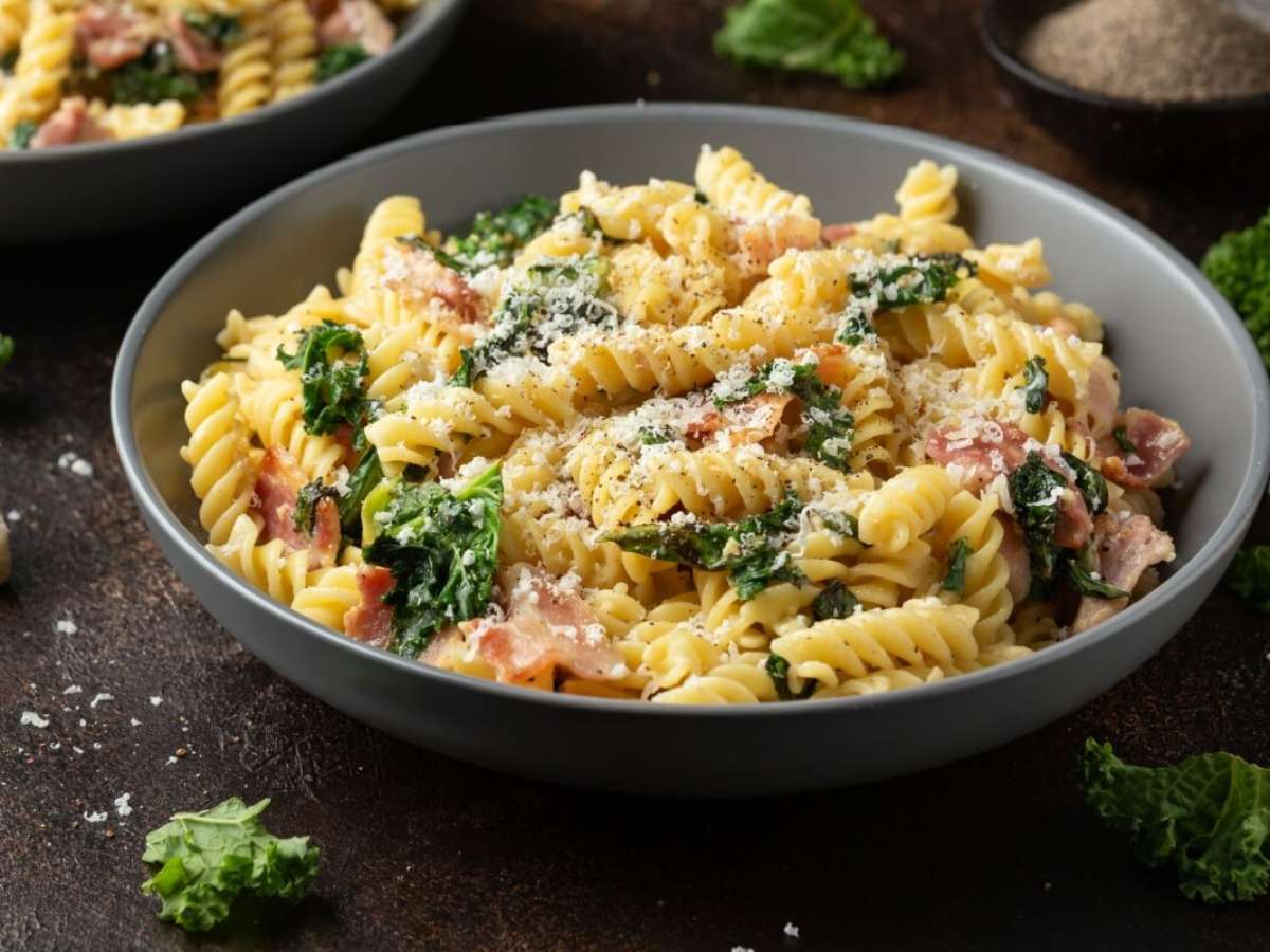 1. Macarrão com couve e bacon
