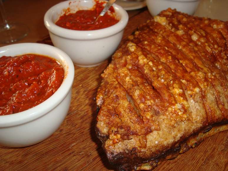 Barriga de porco: a versão do prato, criada pelo chef Rafael De Cara, é do restaurante Pasta D’autori do Chef e leva pimentão, sálvia e páprica. R. Prof. Atílio Innocenti, 743, Itaim Bibi, São Paulo. Tel.: 3044-0615/3044-2362. Horário de funcionamento: terça a sexta-feira, das 12h às 15h; quinta a sábado, das 19h às 23hs; sábados também para almoço, das 12h às 15h e domingos das 12h às 17h
