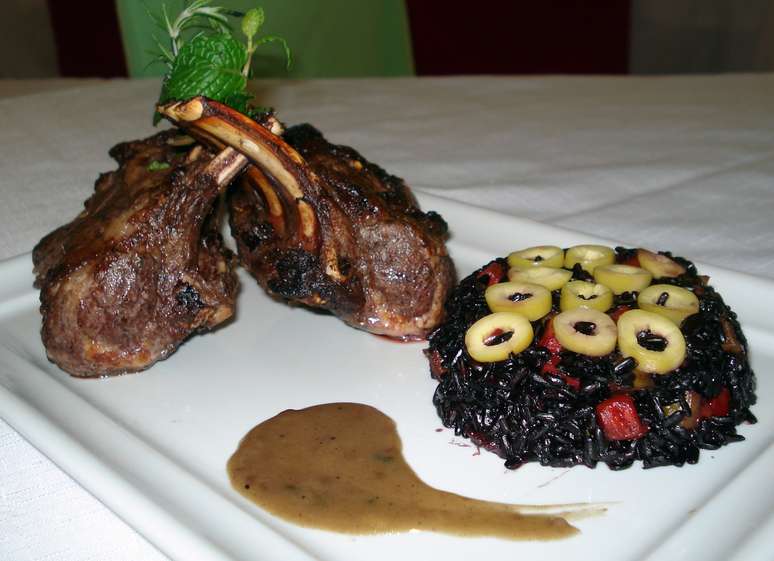 O arroz negro ainda não é muito conhecido pelos brasileiros, mais acostumados ao arroz branco. Mas tem tudo para ser: leve, o ingrediente ainda é afrodisíaco e combina bem com carnes mais fortes. O chef Marcos Roberto, do Hotel Fazenda São João, em São Pedro –SP, elaborou um prato que aproveita bem essas características: carré de cordeiro com arroz negro e geleia.