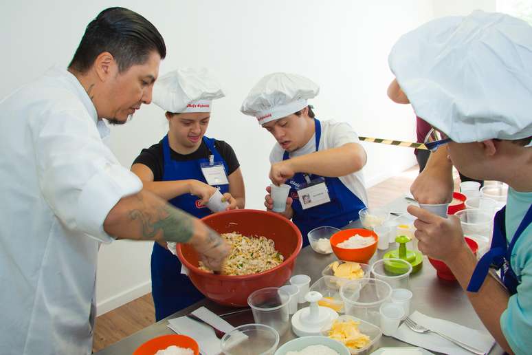 A instituição sem fins lucrativos Chefs Especiais, criada por Simone e Márcio Berti, realiza oficinas de gastronomia para pessoas com Síndrome de Down