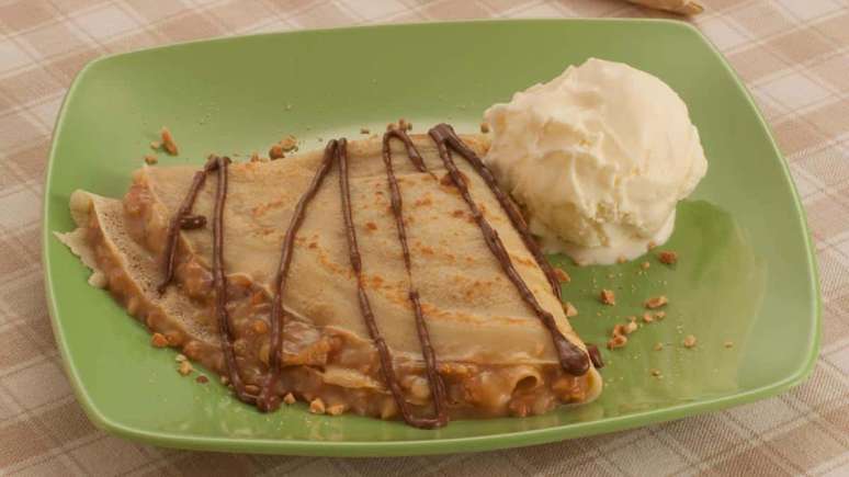 O crepe é um clássico francês à base de farinha, ovos, leite, açúcar e óleo, cuja massa precisa ficar fina e macia — afinal, será dobrada. O recheio fica ao gosto de quem vai saborear, mas nós indicamos fortemente esta opção de crepe com doce de leite.