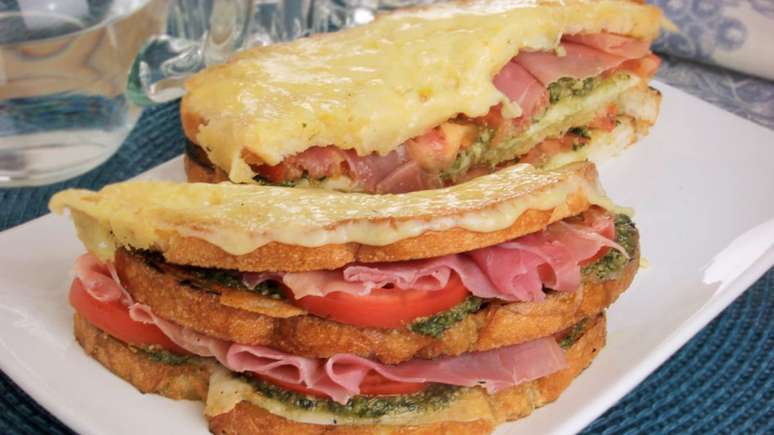 - Monte outro sanduíche com o restante dos ingredientes e leve ao forno médio, preaquecido, por 10 minutos ou até gratinar.