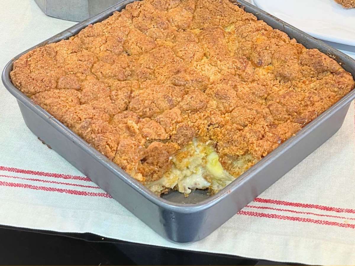 Não é bolo, não é pão, é uma cuca cremosa com uma cobertura de farofa crocante de paçoca, fácil de fazer