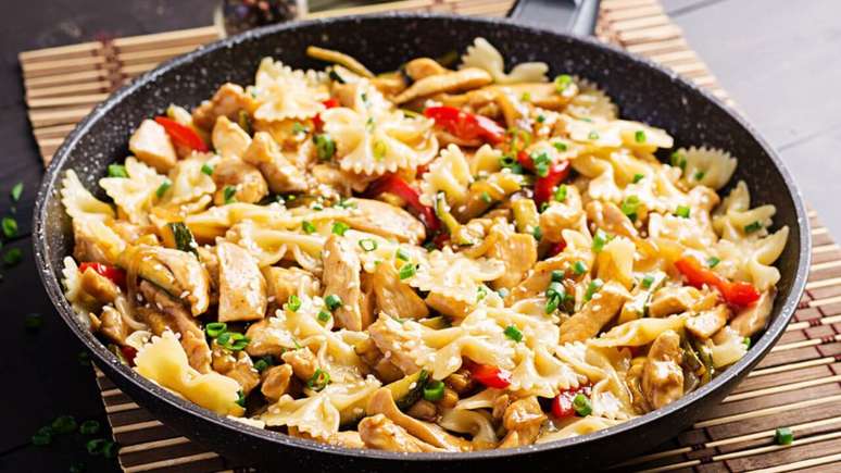 - Adicione o brócolis, o champignon, o frango reservado e refogue por 3 minutos