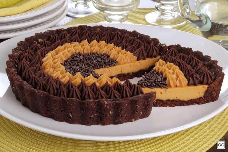 Torta de doce de leite, chocolate e licor de cacau